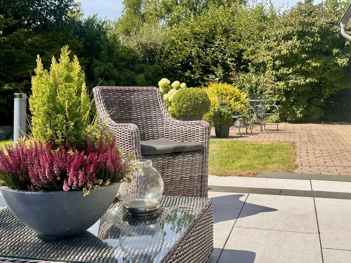 Der schön angelegte Garten bietet Ihnen verschiedene Plätze zum Verweilen sowie einen dekorativen Teich.