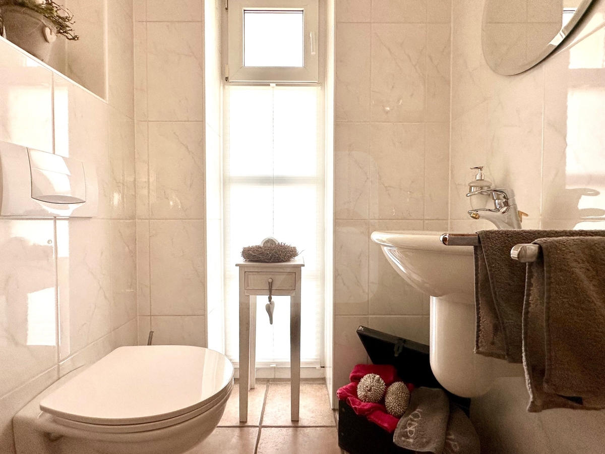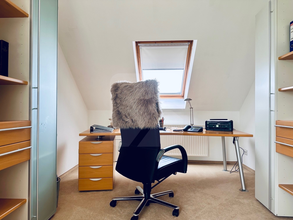 Aktuell wird ein Balkonzimmer als Arbeitszimmer genutzt, zwei weitere Zimmer sowie ein Duschbad stehen Gästen zur Verfügung.