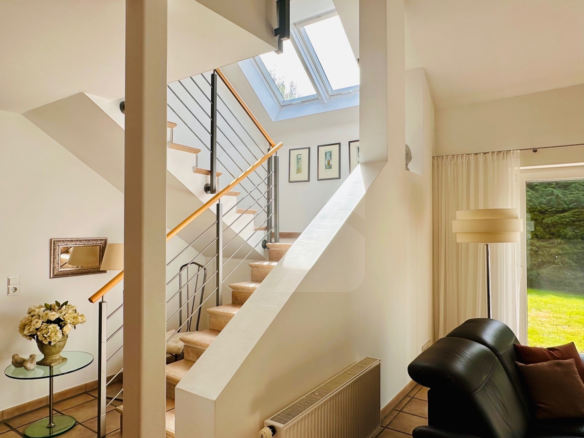 Über die Treppe im Wohnbereich erreichen Sie die Galerie im Dachgeschoss.