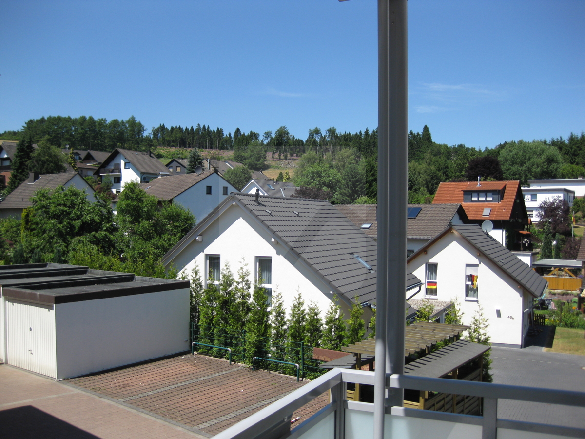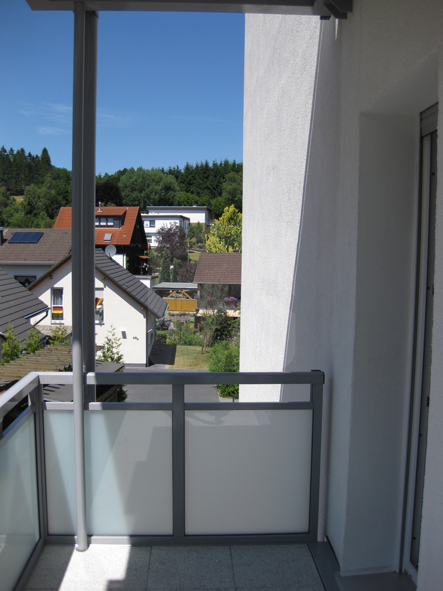 Von der Küche aus gelangen Sie auf den Balkon mit schöner Aussicht über die Häuser ins Grüne.