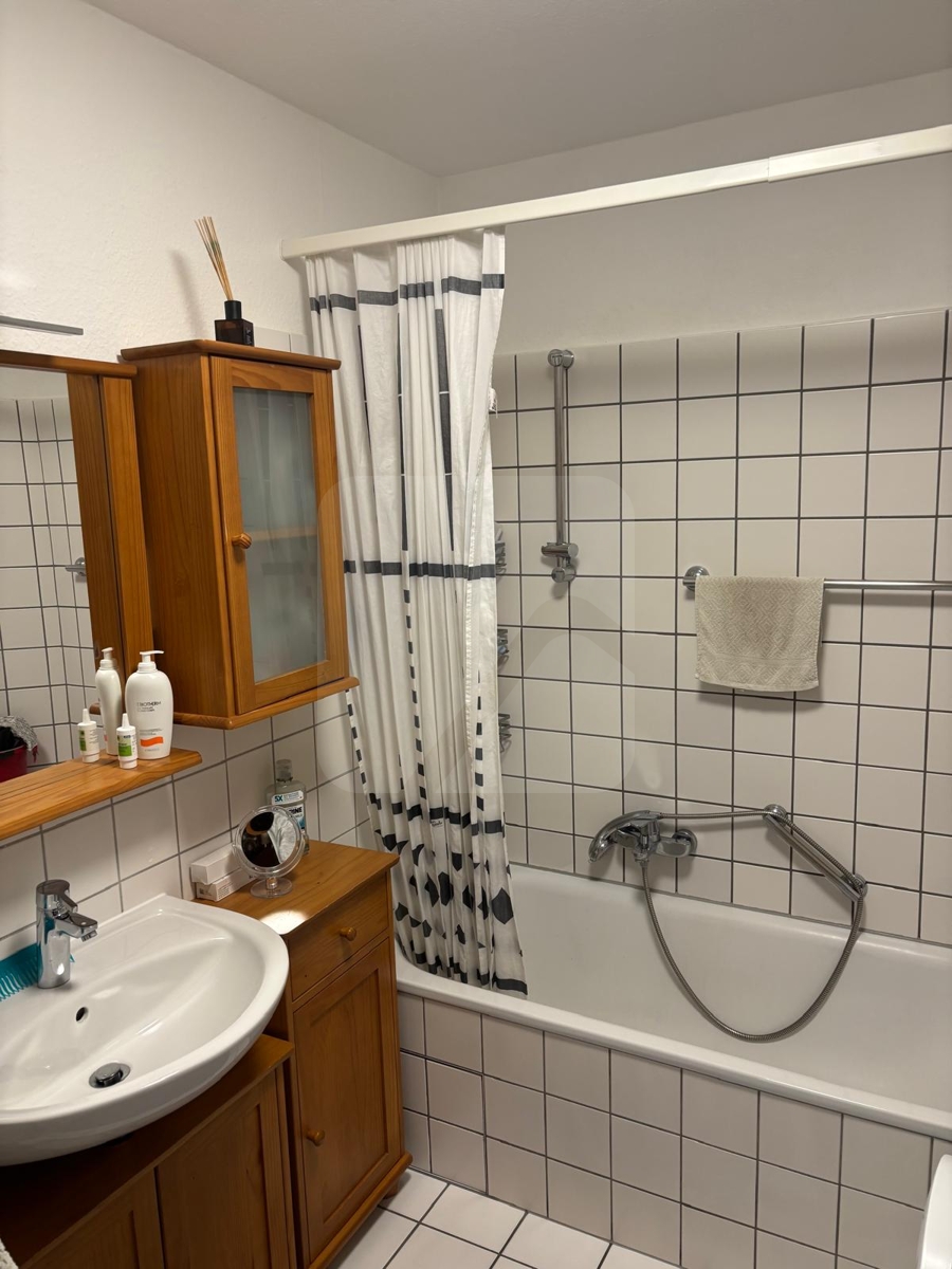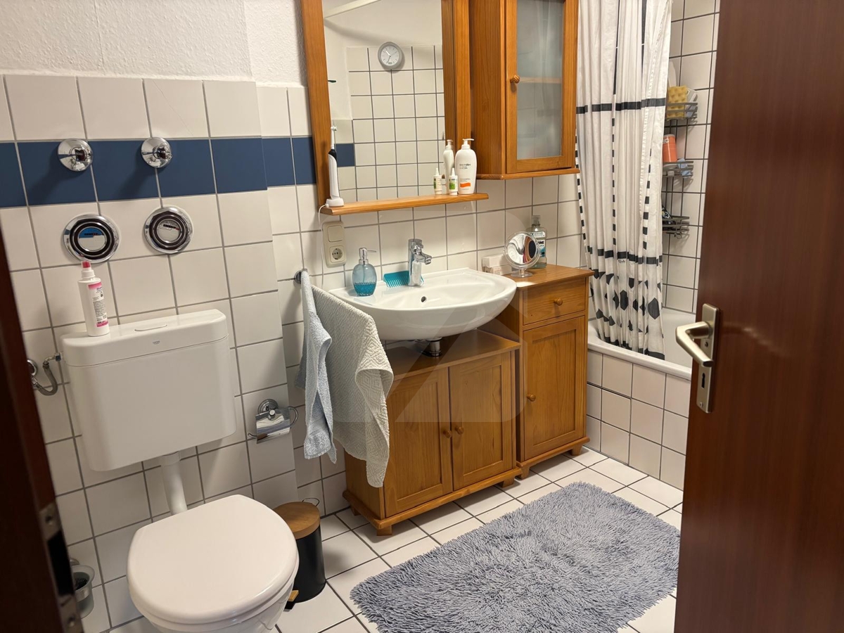Das innenliegende Badezimmer ist mit einer Badewanne ausgestattet. Der Anschluss für die Waschmaschine befindet sich ebenfalls im Badezimmer und erspart Ihnen weite Wege in den Keller.